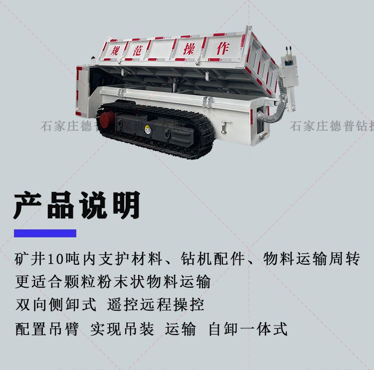 > 德普钻探煤矿井下颗粒粉末物料运输 mpcql侧卸式履带气动平板车MPCQL-10.5d